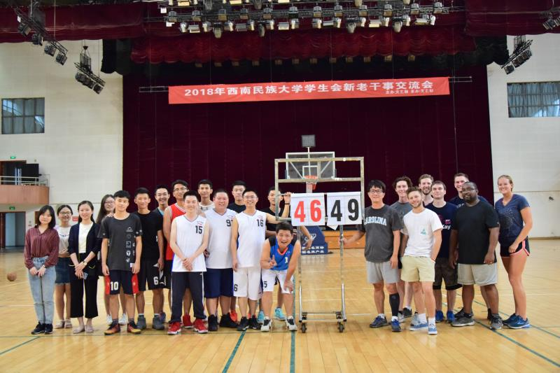 2018年5月3日下午,北佛罗里达大学考金商学院经济学系主任AlbertLoh教授受邀带领10多名师生来我校进行学术交流访问。在两场精彩的学术讲座活动后,经过经济学院工会的积极联系与筹划,来自美国的师生一行与我院教职工师生联队在航空港校区南区体育馆进行了一场别开生面的篮球友谊赛。